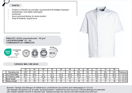 NYBO Kokkejakke - Take Away, Unisex, Korte ermer, Hvit - XS-4XL