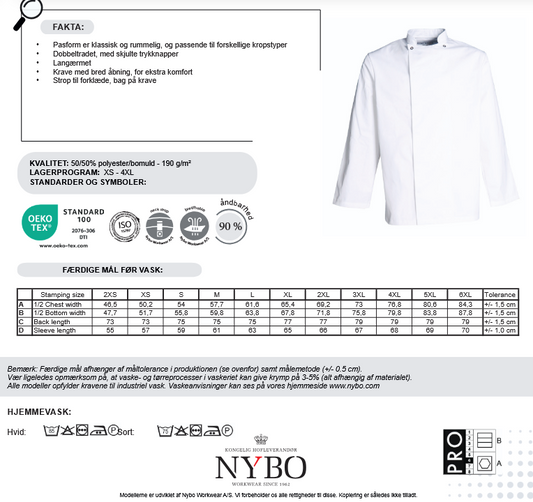 NYBO Kokkejakke - Take Away, Unisex, Lange ermer, Hvit - XS-4XL