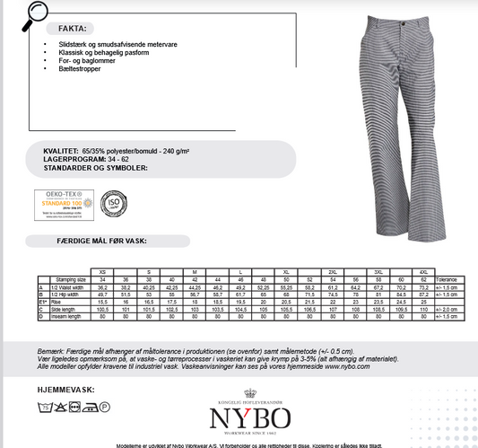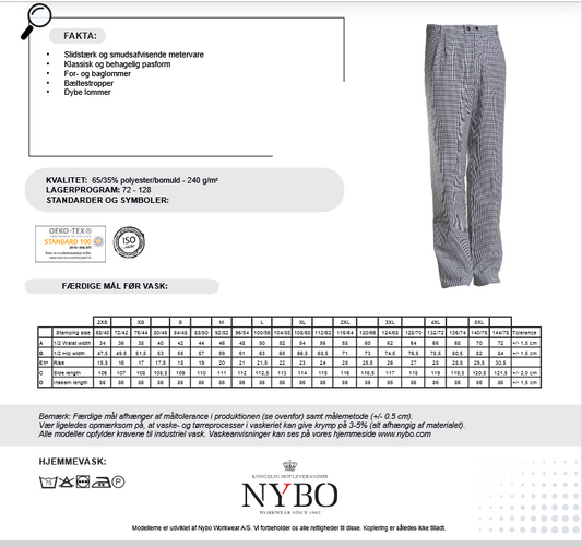 NYBO Kokkebukse, Flow - Unisex, Sort-hvid Pepita