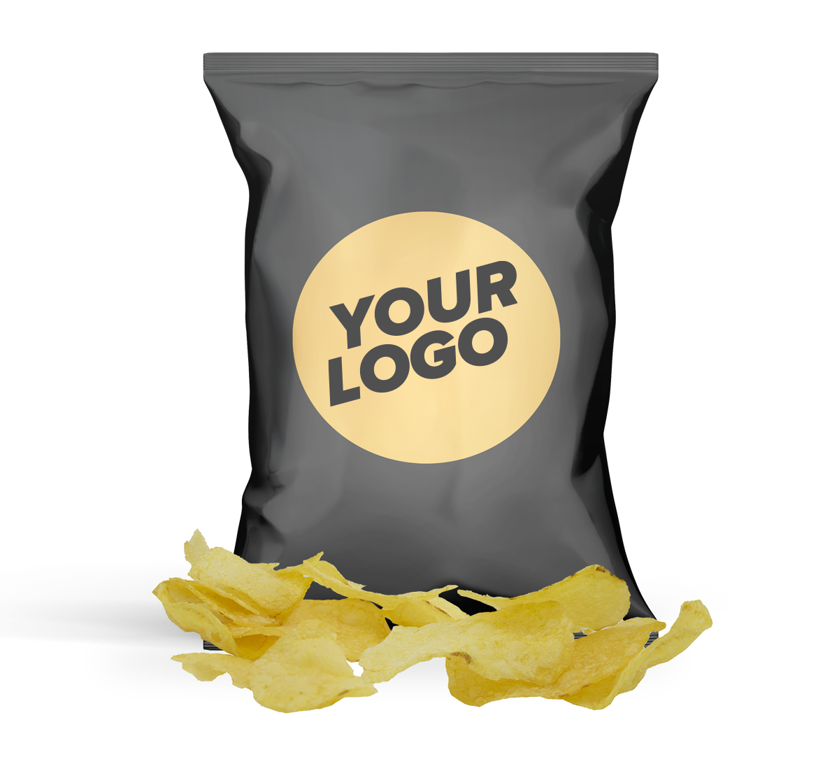 25g`s poser med tykke saltede chips. Chipsene er produsert i Sverige og pakket i Danmark. Posen er svart med teksten «Saltede chips».