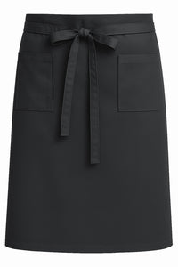 Klassisk kort forkle med påsydd knytebånd, løpegang og to lommer – et fleksibelt og funksjonelt valg til hverdagsbruk.