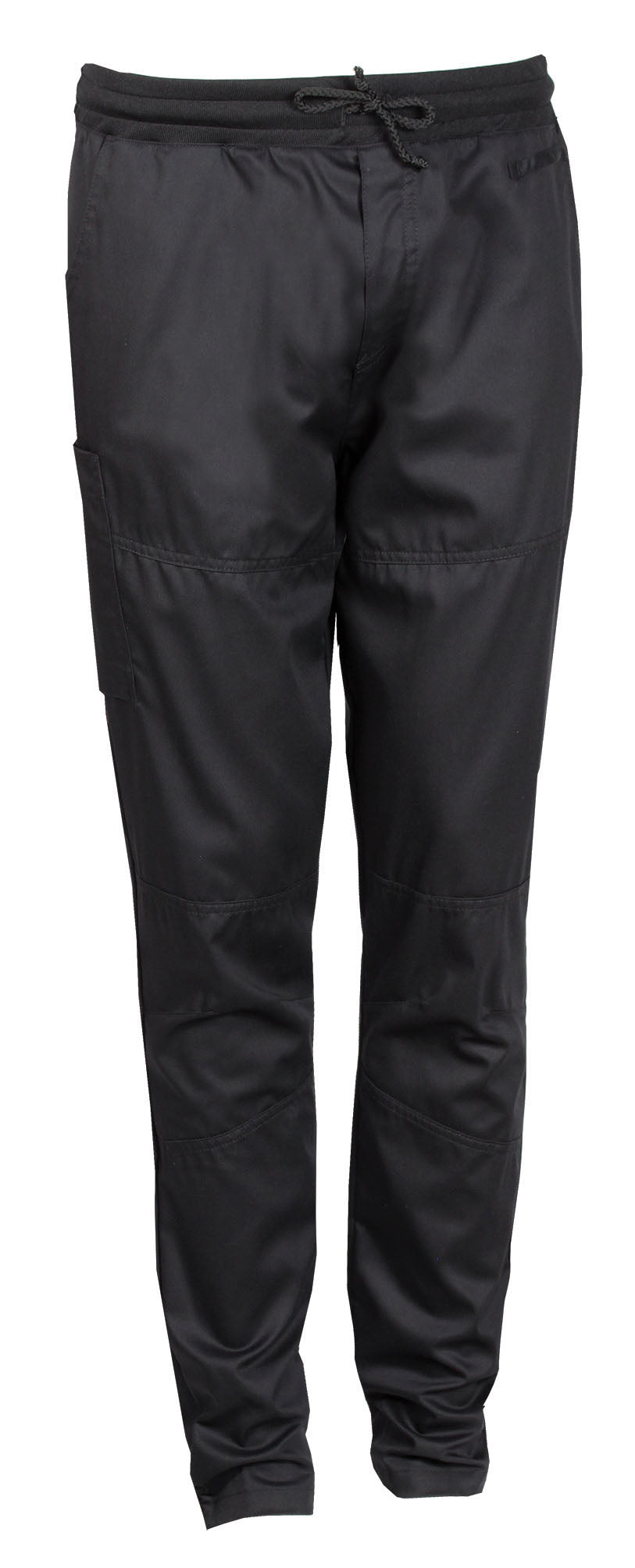 Bukser inspirert av street style; passformen er løstsittende i midje og hofte og blir smal og tettsittende i bena – perfekt egnet for både menn og kvinner. Ribbestrikk og knytebånd i midjen, samt ribb nederst bak på bena, gjør buksene både moderne og komfortable å ha på. Lommer foran og bak, samt en lårlomme som kan lukkes, gir gode muligheter for oppbevaring av redskaper som brukes i en travel hverdag. Under linningen finnes en diskret servicerem, ideell for å henge et kjøkkenhåndkle når man arbeider i serveringsområdet og på kjøkkenet.